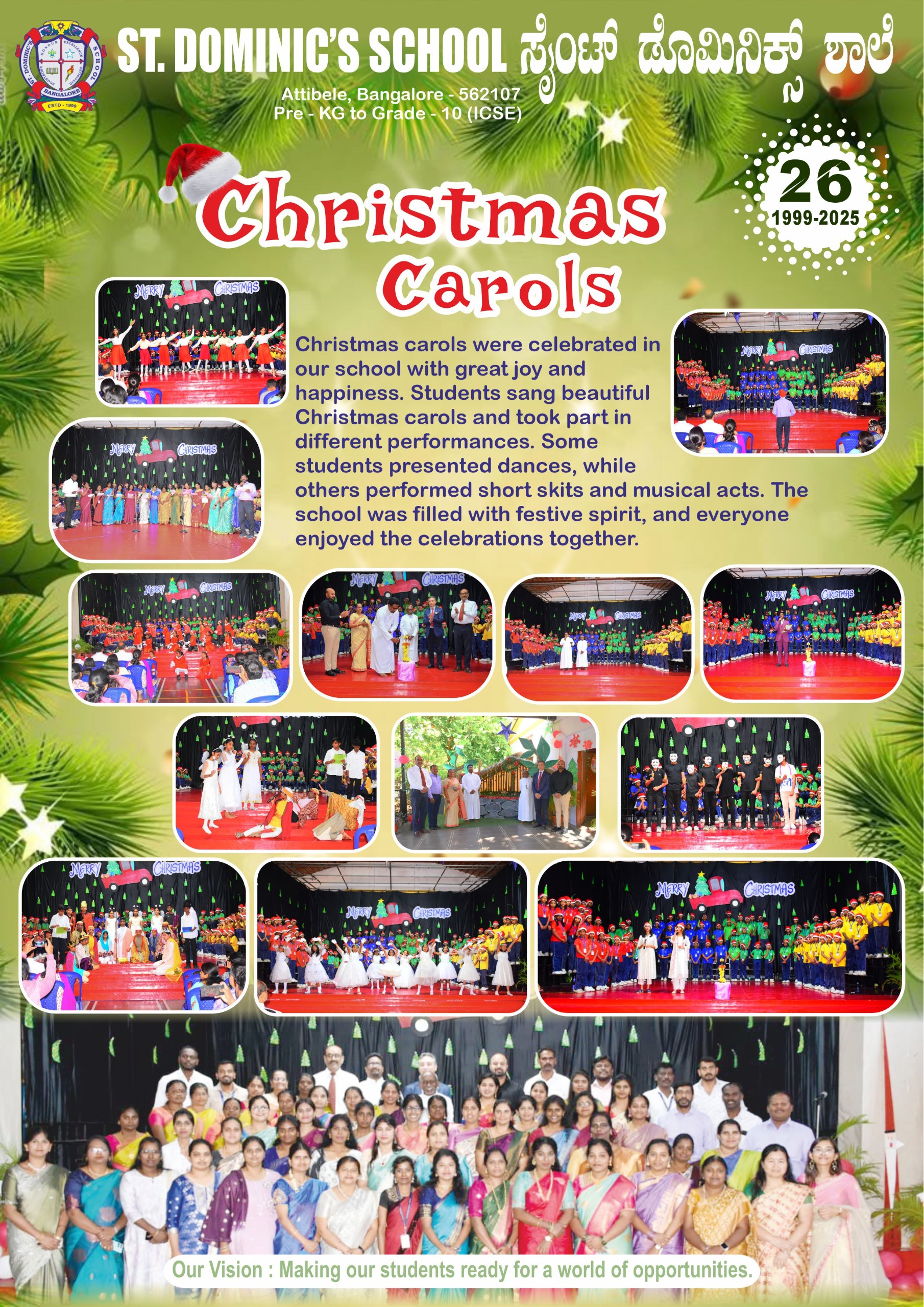 St. Dominic’s School in Attibele is run along the lines of the best CISCE schools in India with the better educational practices available and aims to deliver results on par with the international schools.